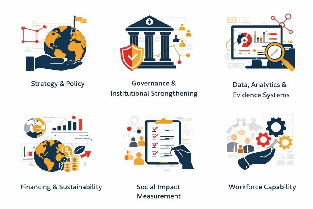 We focus on long-term public and social value creation through financing strategies, organisational capability, partnership models, and robust impact frameworks that support scale, continuity, and sustained outcomes.